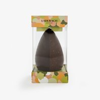 An unusual shape with a unique composition. With this Easter egg, we have created something truly unique—an innovative composition of two different chocolate halves. A half shell made of pure dark chocolate meets a second made of the finest dark almond praliné. We have further refined the latter with caramelized, coarsely ground almonds. A modern interpretation of the egg, created for a contemporary Easter celebration. (120 g)