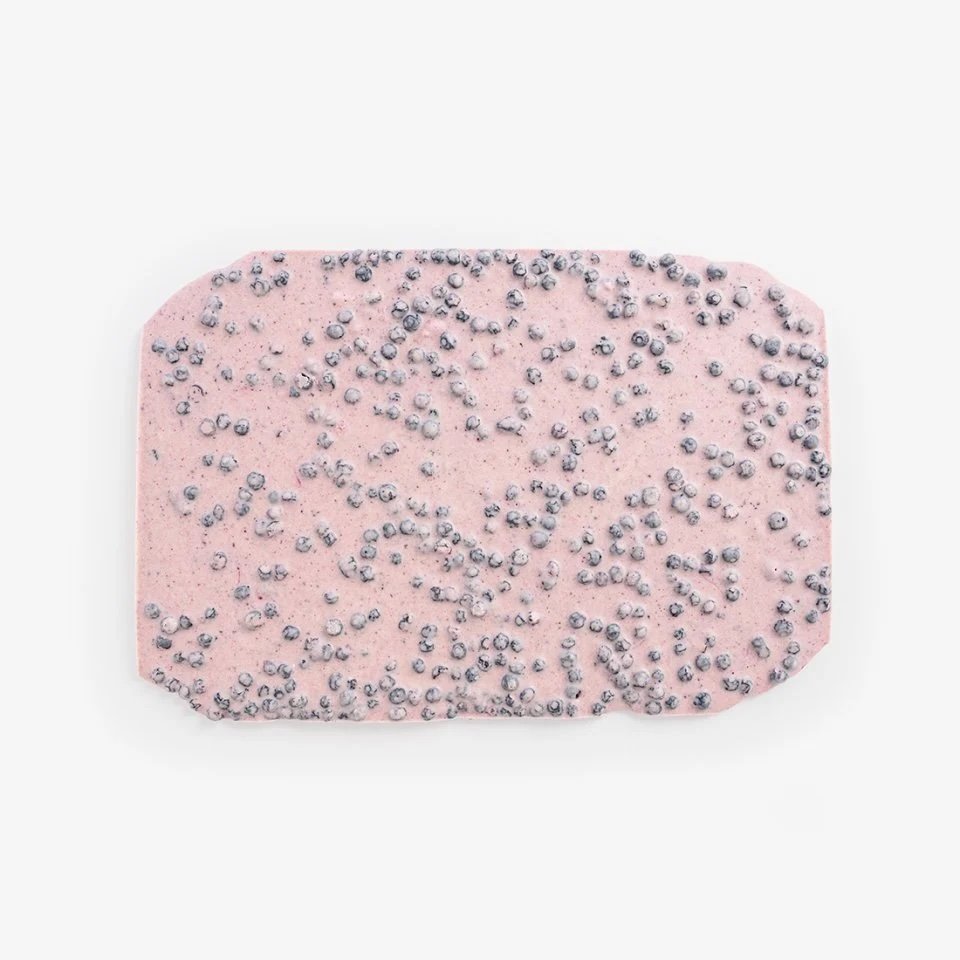 Swiss white chocolate with mascarpone, lemon and blueberry powder, mixed with freeze-dried wild blueberries.