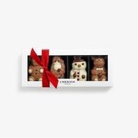 Four (4) milk chocolate holiday figures filled with creamy gianduja.
