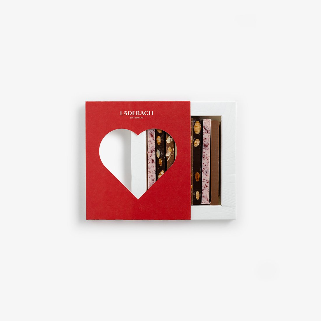 Love can be as supreme as this selection of nine sticks of the most popular Läderach FrischSchoggi varieties offered in an attractive heart-shaped packaging. Valentine’s Day is the perfect opportunity to give this romantic gift to the one you love. (90g).