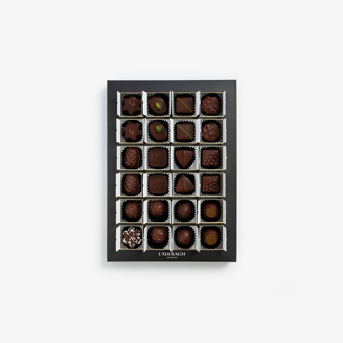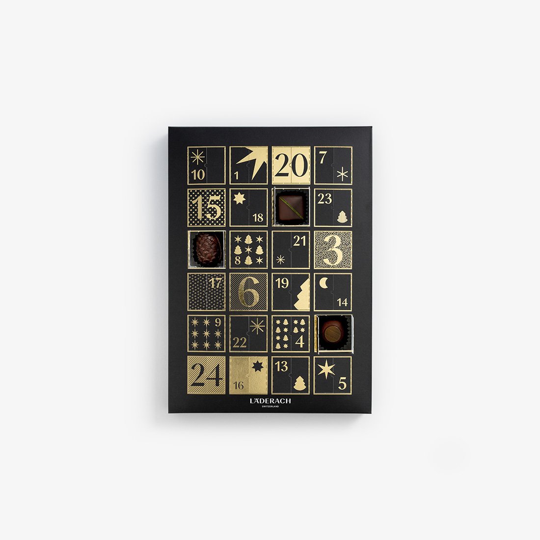 Advent calendar filled with 24 dark chocolate pralines and truffles.