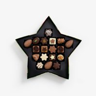 Eighteen (18) pieces of assorted pralines in a festive star box.