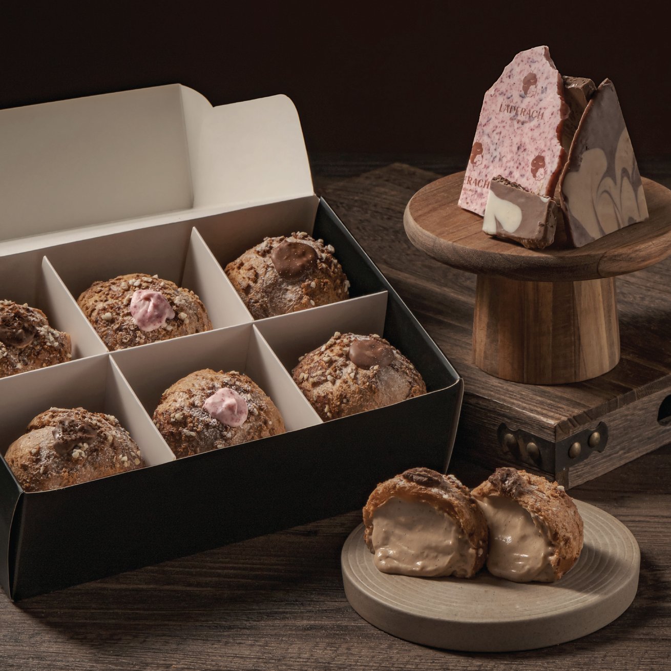 Läderach and Baristart have joined hands to bring you an indulgent twist on your favourite, classic mini cream puffs.