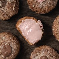 - Baristart Läderach chocolate mini cream puff with FrischSchoggi Raspberry Blackberry White custard (2 mini puffs)