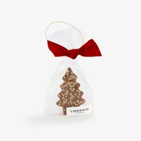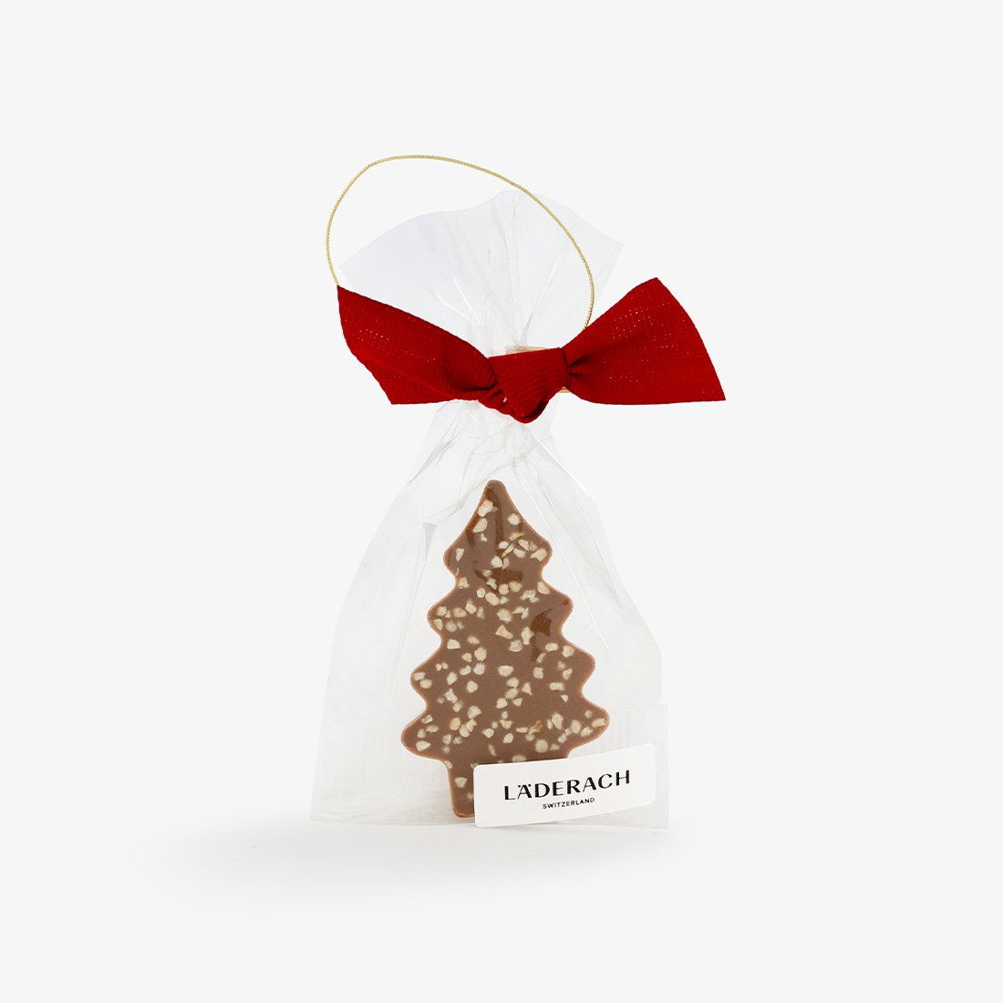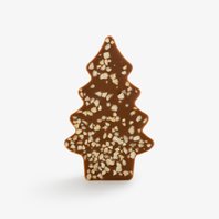 Light almond gianduja layered with milk chocolate and studded with almond bits.